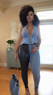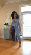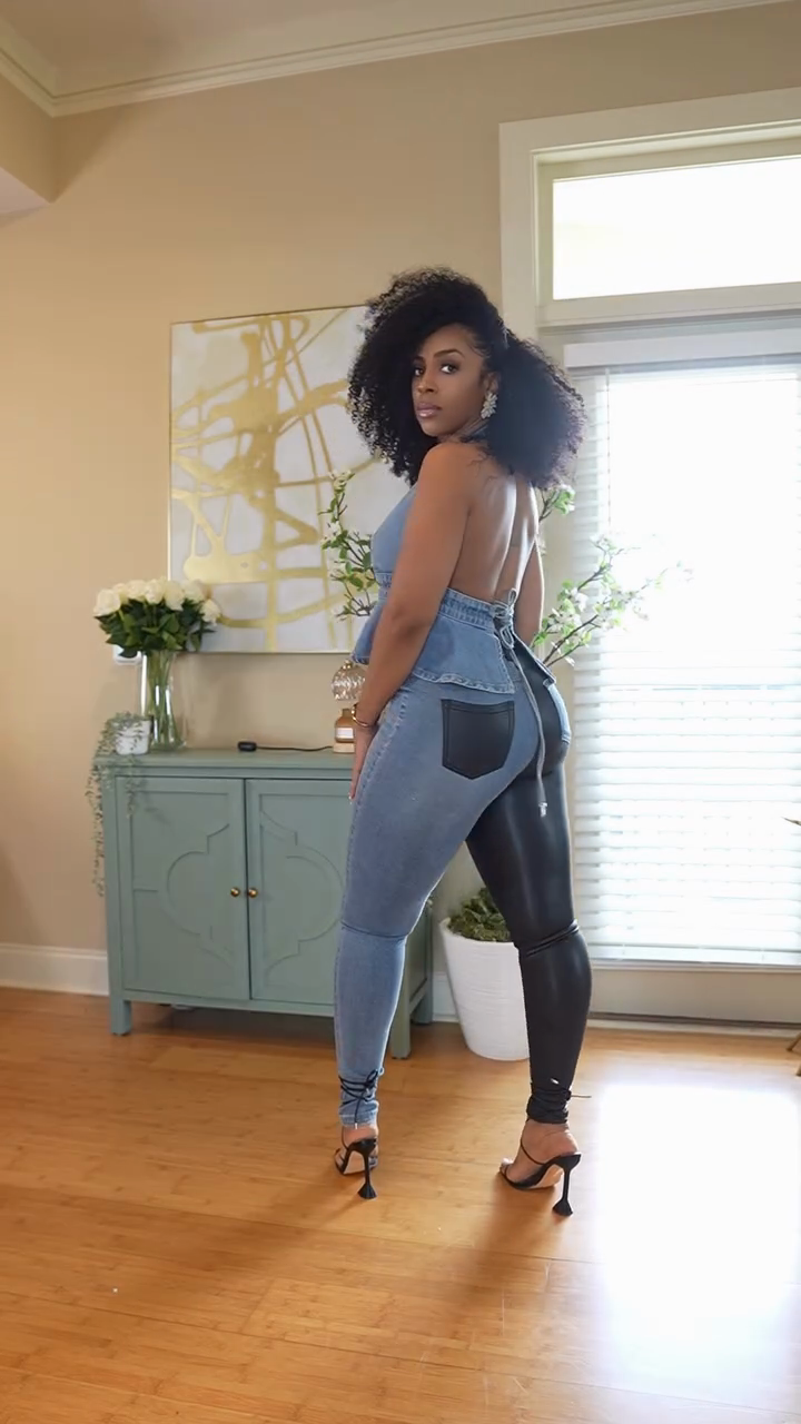 Asymmetric Denim & Faux Leather Two - Piece Set