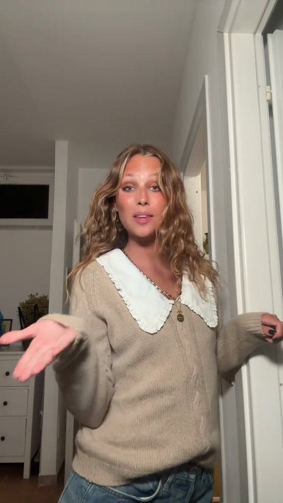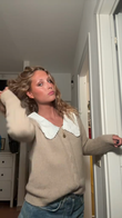 Beige Cable - Knit Sweater with White Peter Pan Collar