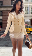 Beige Double - Breasted Peplum Blazer