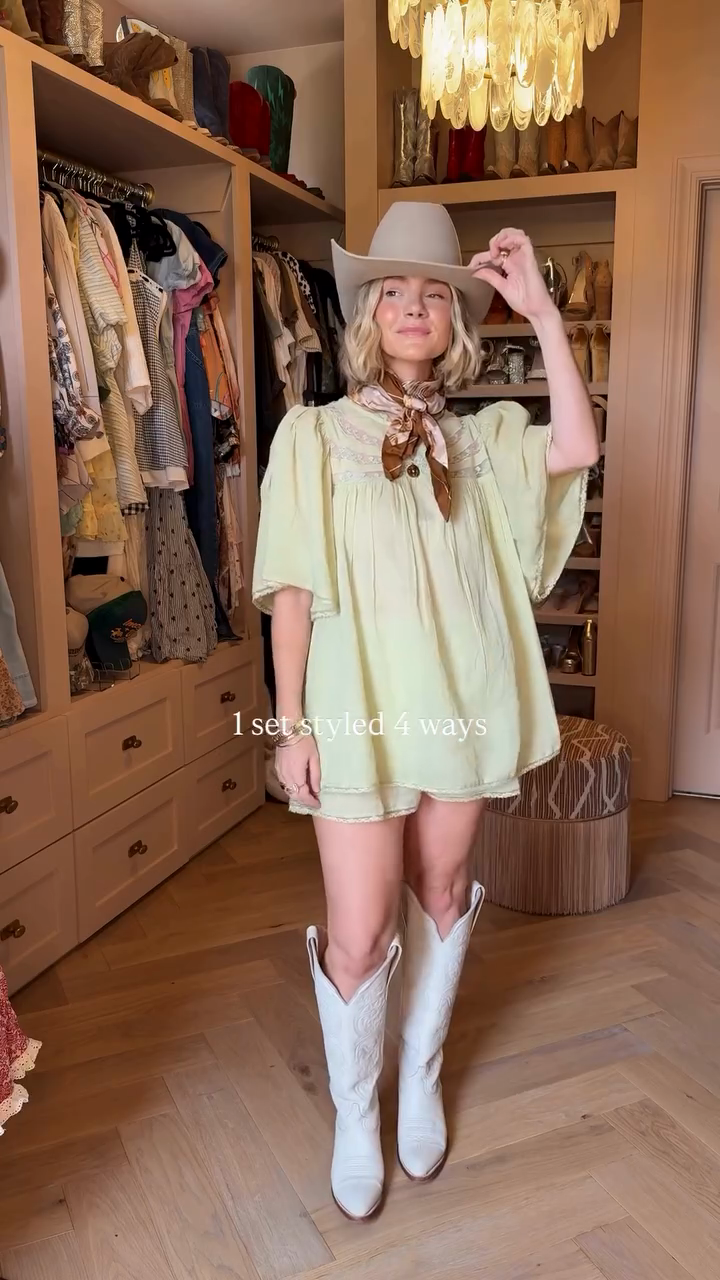Beige Sheer Blouse and Shorts Set