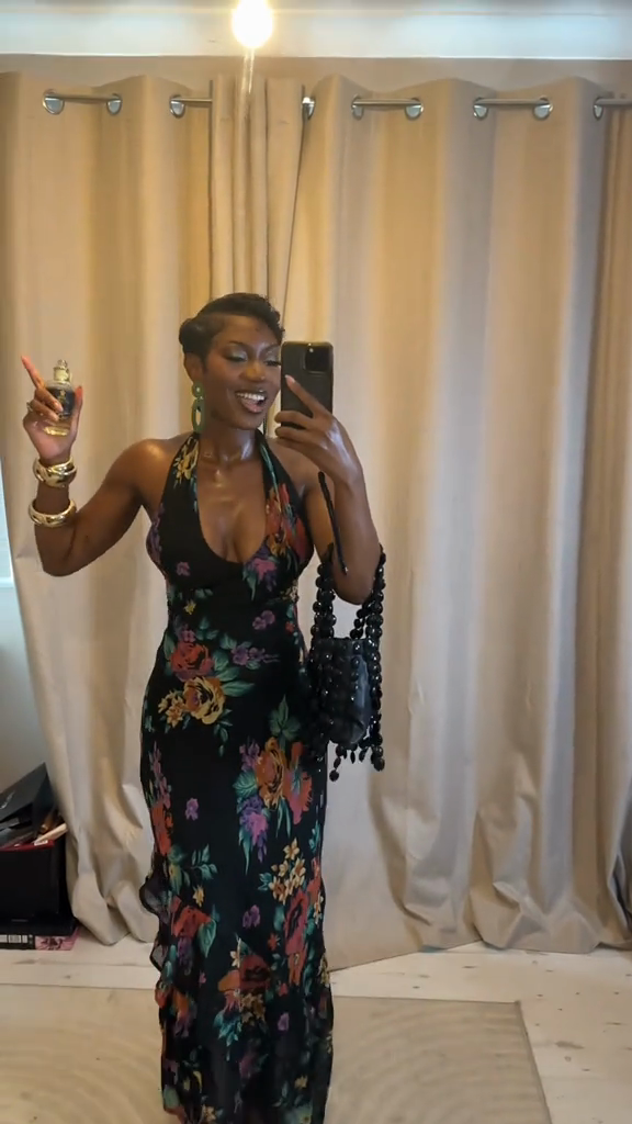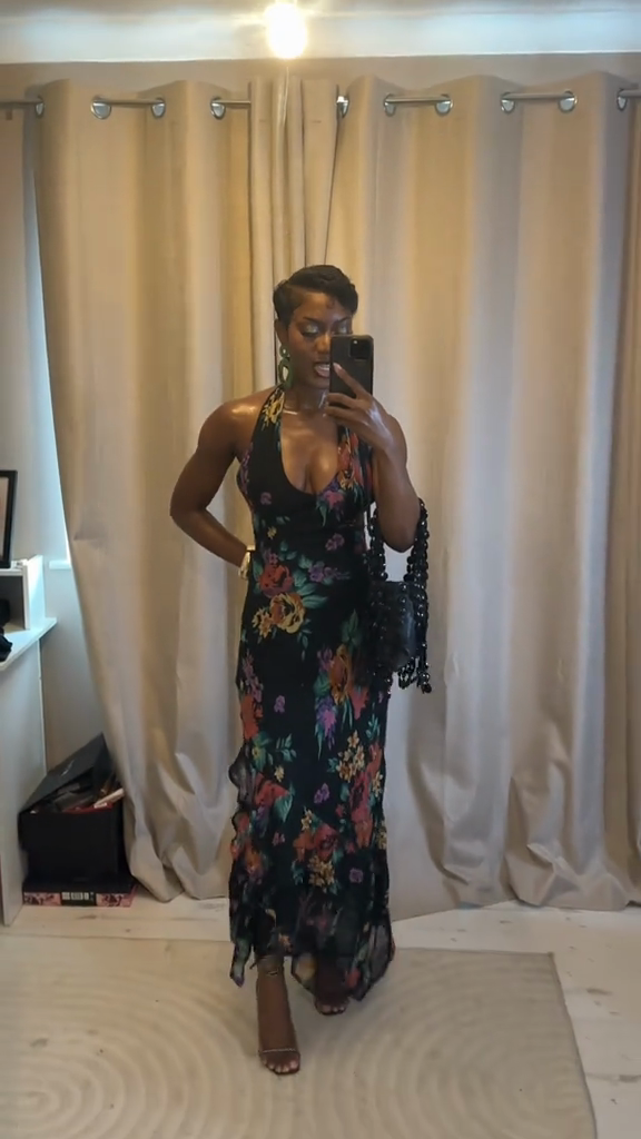 Black Floral - Print Halter Maxi Dress