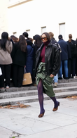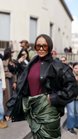This black leather down jacket seamlessly blends the edgy feel of classic leather with the modern comfort of down. Its oversized silhouette and striking collar create a bold, eye-catching look. The front button closure offers both practicality and style.