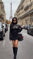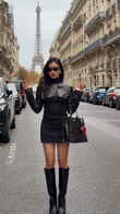 It's perfect for urban adventures, nightlife, or any other occasion where you want to make a stylish statement. Pair it with knee-high boots and a chic handbag (as shown) for a sophisticated, edgy look. Sunglasses add a touch of fashion.