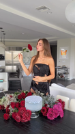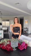 Crafted from black mesh with textured overlays, this set features an off-the-shoulder silhouette and a matching midi skirt, both embellished with abstract cutout details. For an edgy evening look, pair this black mesh cutout off-the-shoulder two-piece with strappy heels and statement jewelry.