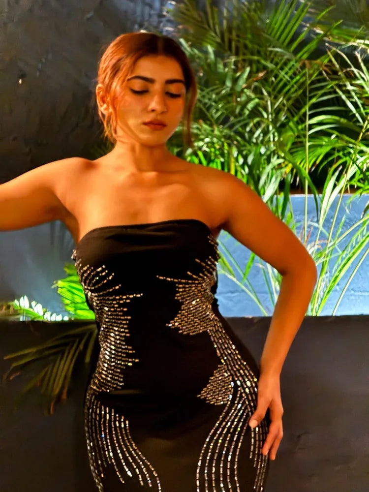 Design: Off-the-shoulder neckline with sheer panels, crystal embellishments and a mermaid silhouette