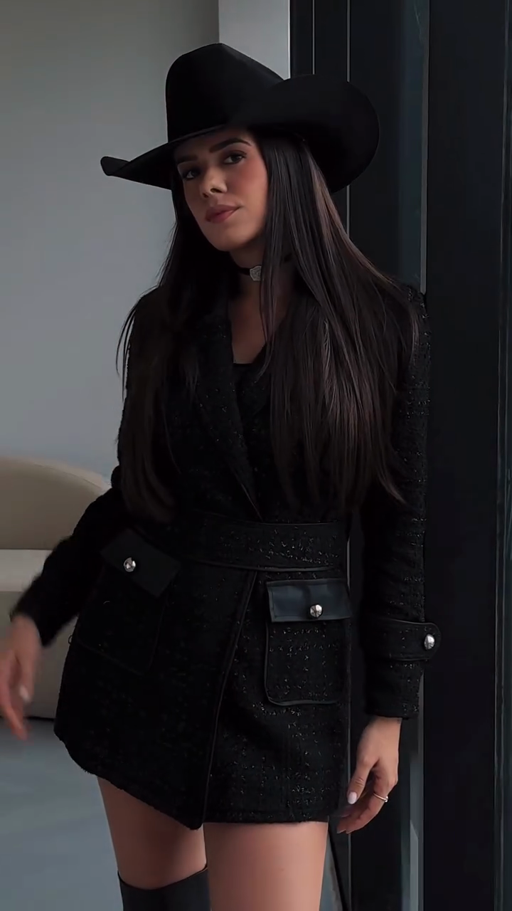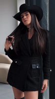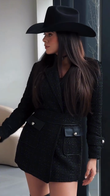 Black Tweed Belted Blazer