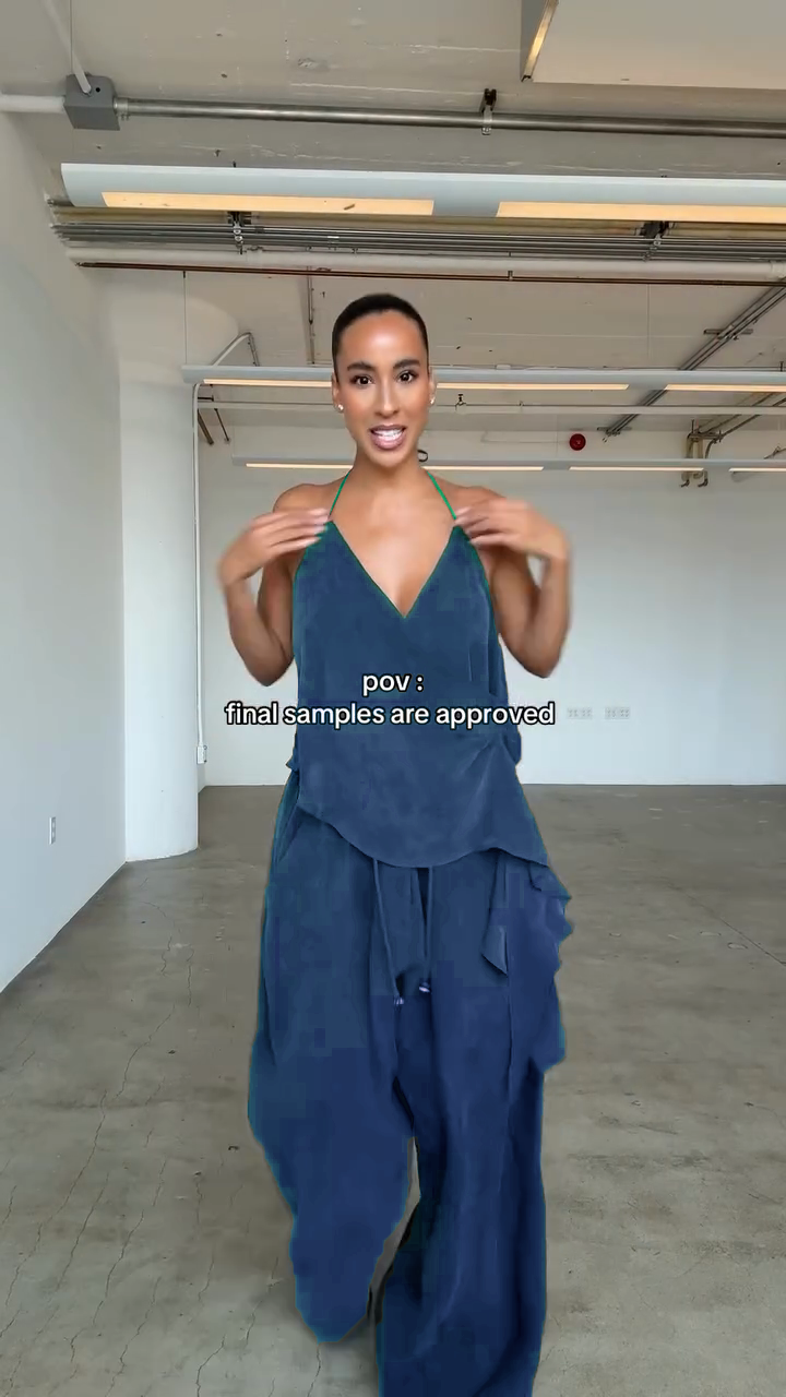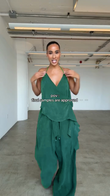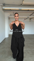 Black V - Neck Halter Top and Wide - Leg Pants Set