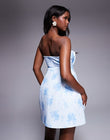 Blue and White Floral Strapless Mini Dress