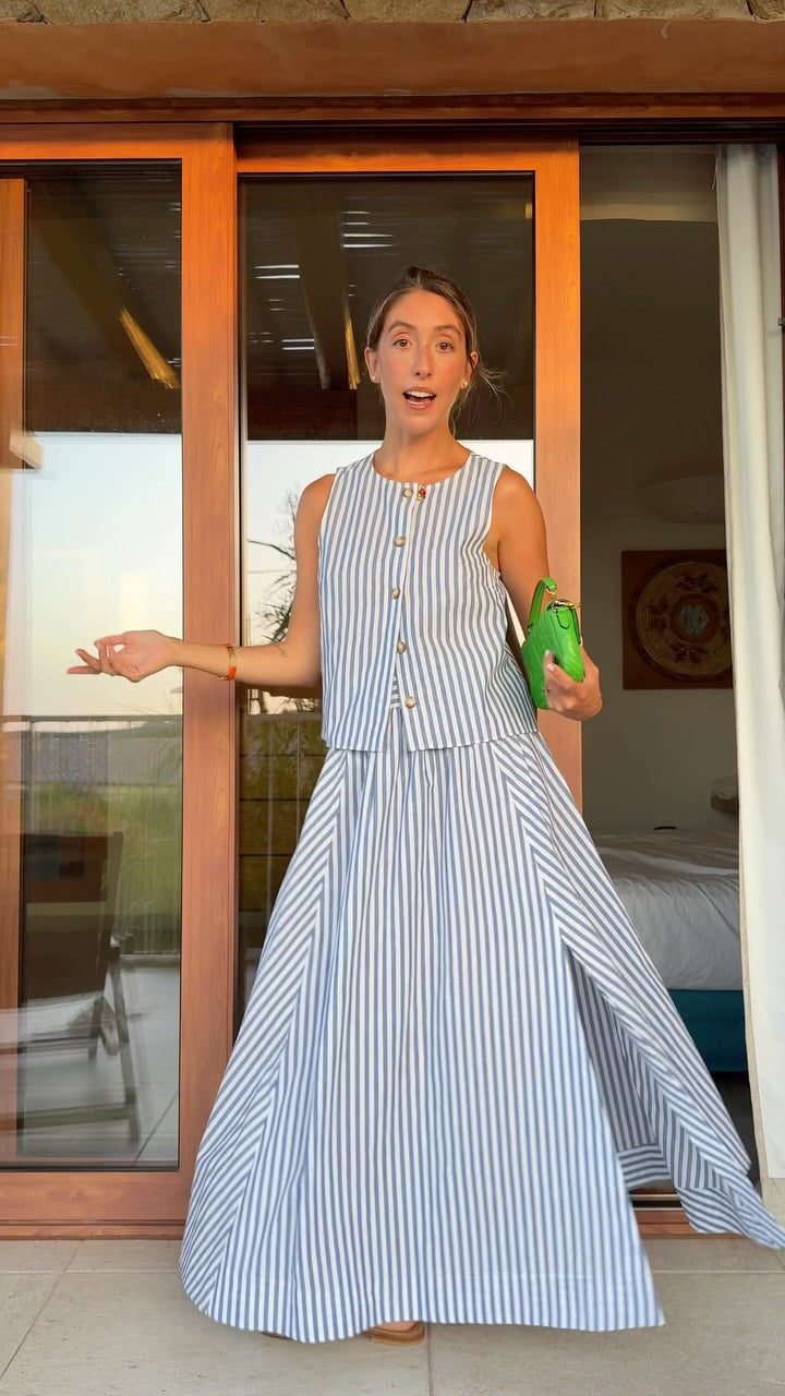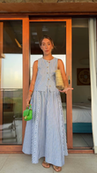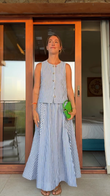 Blue and White Striped Sleeveless Top and Maxi Skirt Set