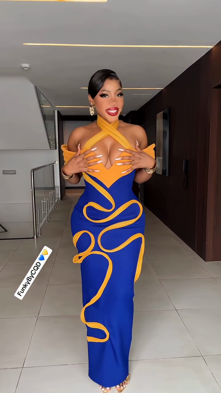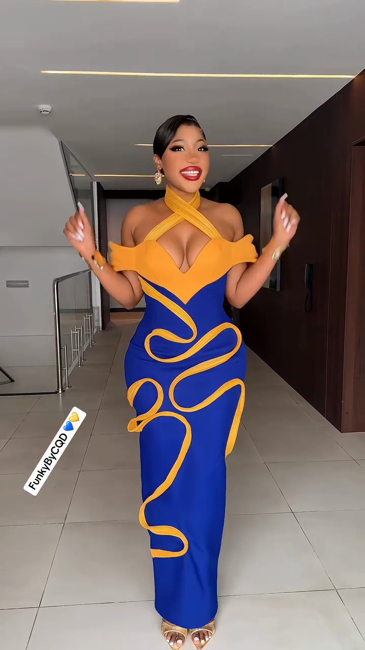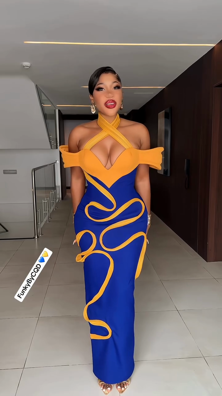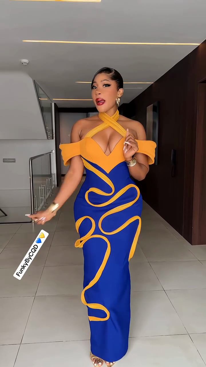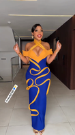 Blue and Yellow Halter Neck Maxi Dress