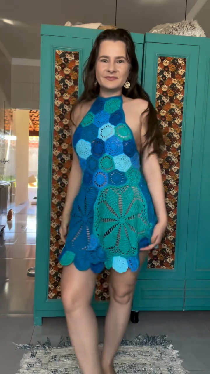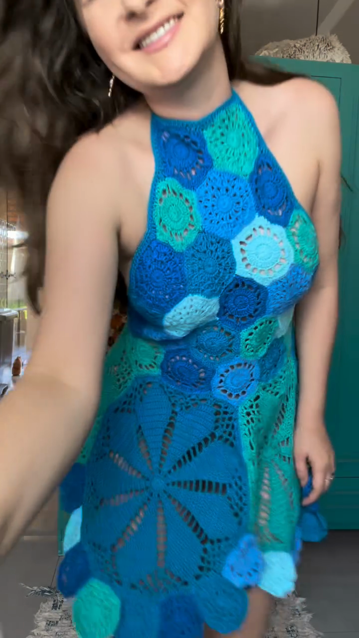 Blue Crochet Halter Mini Dress