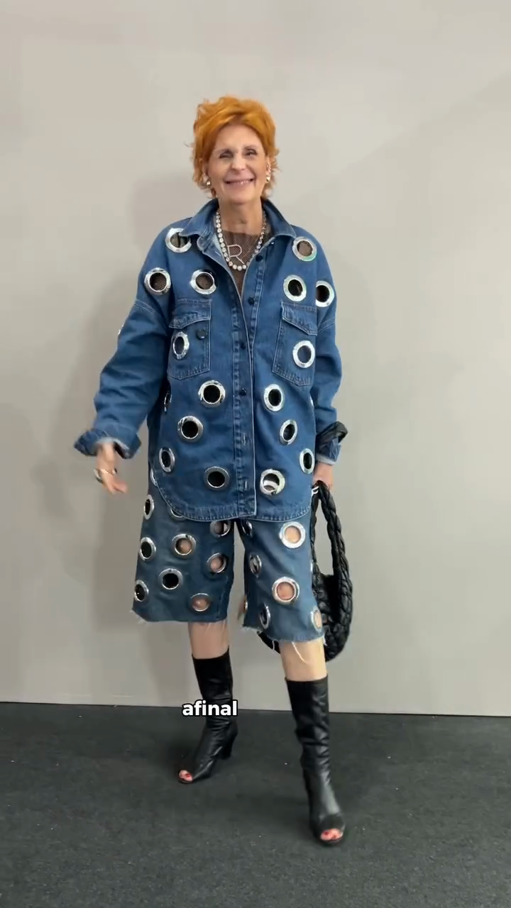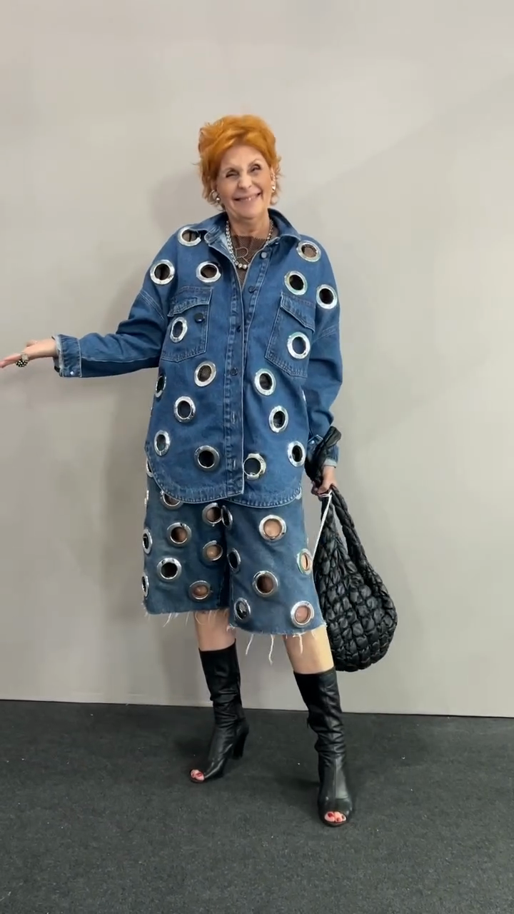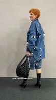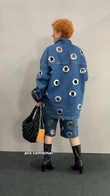 Design: Oversized shirt with eyelet embellishments and knee-length shorts