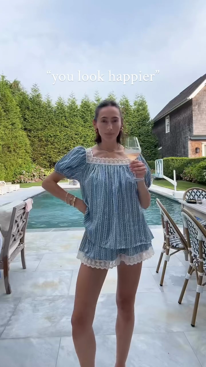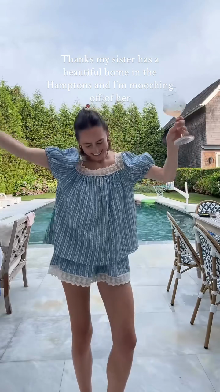 Blue Striped Lace - Trimmed Two - Piece Set