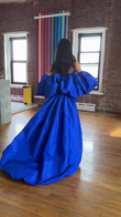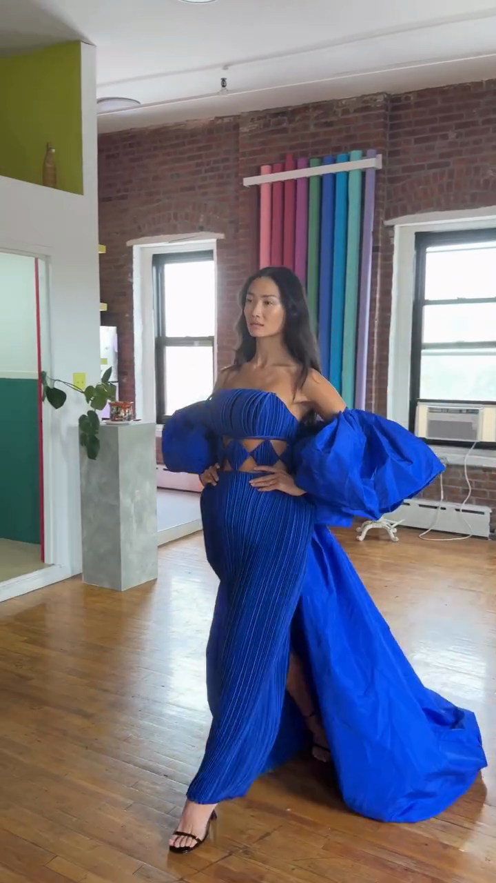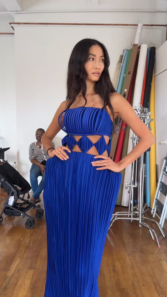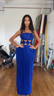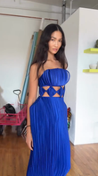 Blue pleated hollow dress