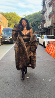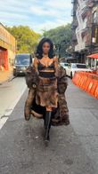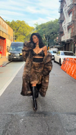 This brown faux fur coat exudes luxurious chic. The oversized silhouette adds a touch of modern allure, making it a stunning statement.