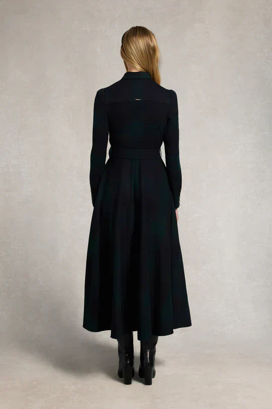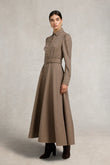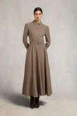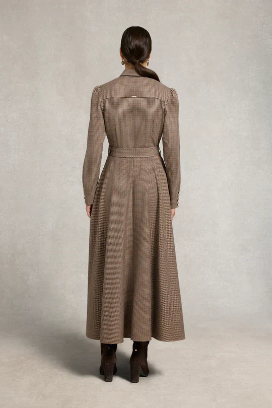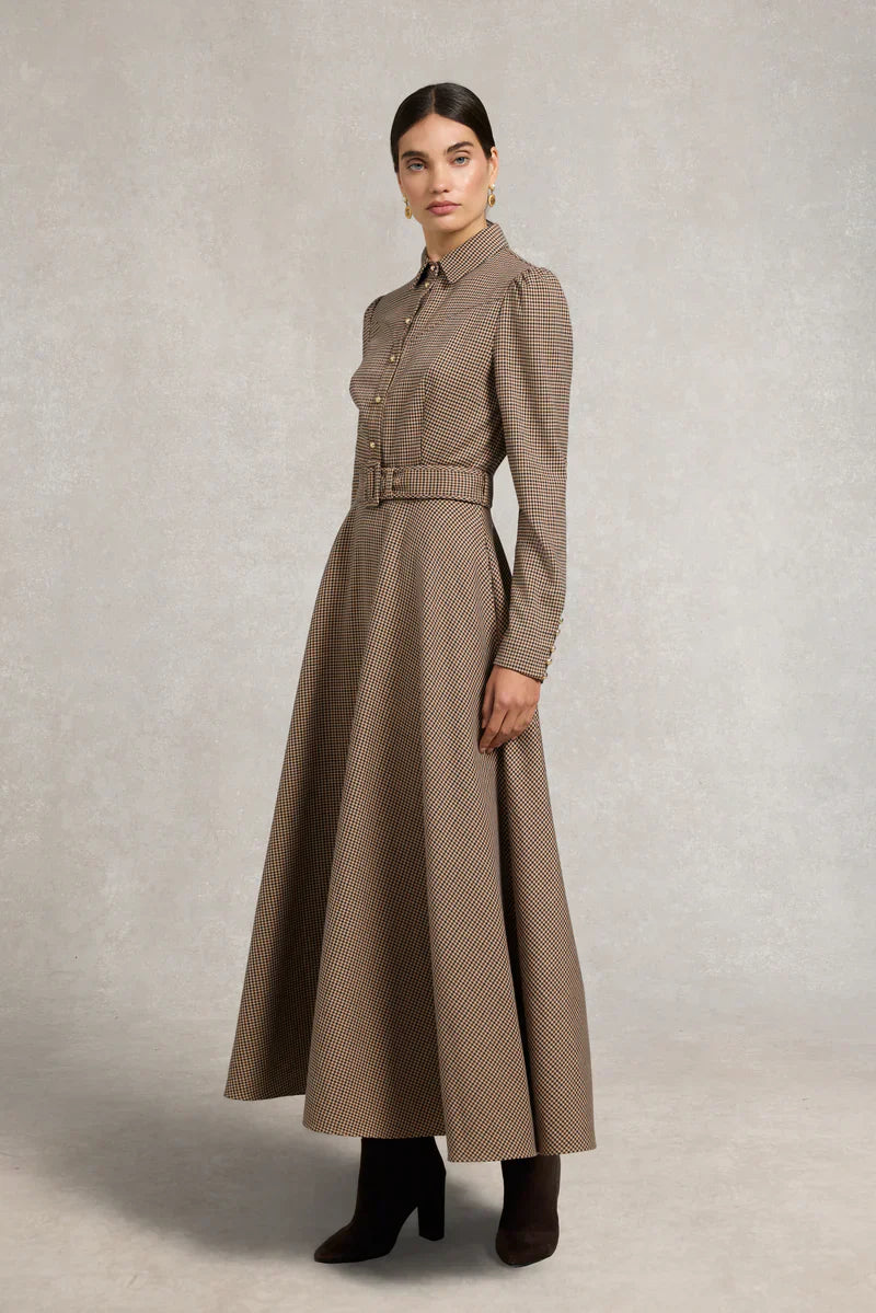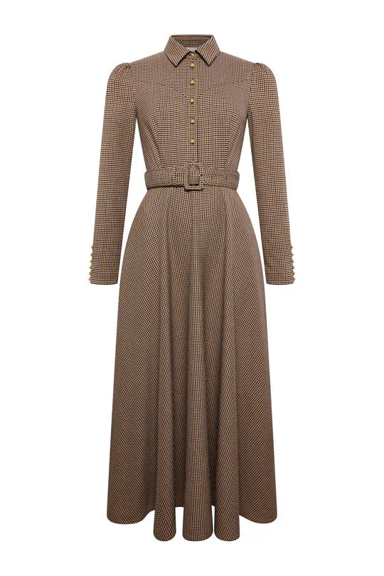 Brown Houndstooth Belted Maxi Shirt Dress