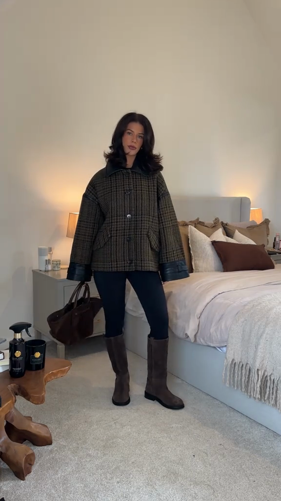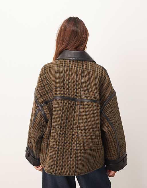 Brown houndstooth leather jacket