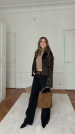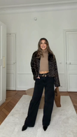 This brown faux fur leopard print jacket features brown faux fur, a leopard print design, a front zipper, and a relaxed silhouette. Pair it with a mini skirt and boots to elevate your casual look.