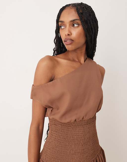 Brown One - Shoulder Mini Dress