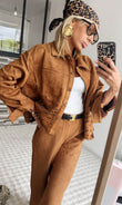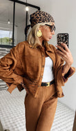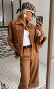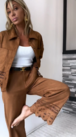 Brown Suede Embroidered Jacket with Matching Pants
