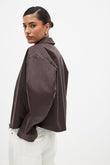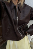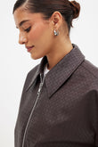 Brown Woven Faux Leather Jacket and Mini Skirt Set