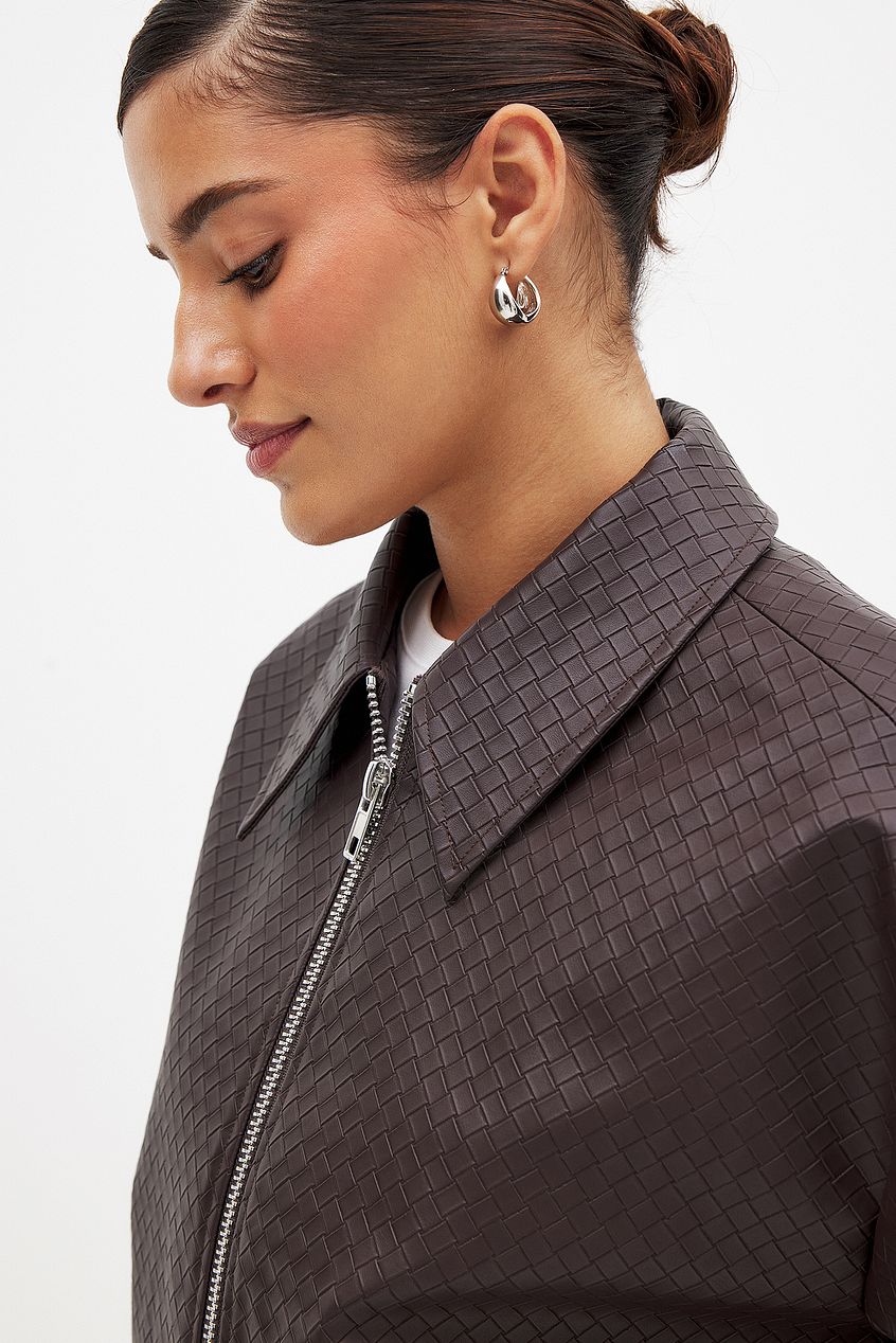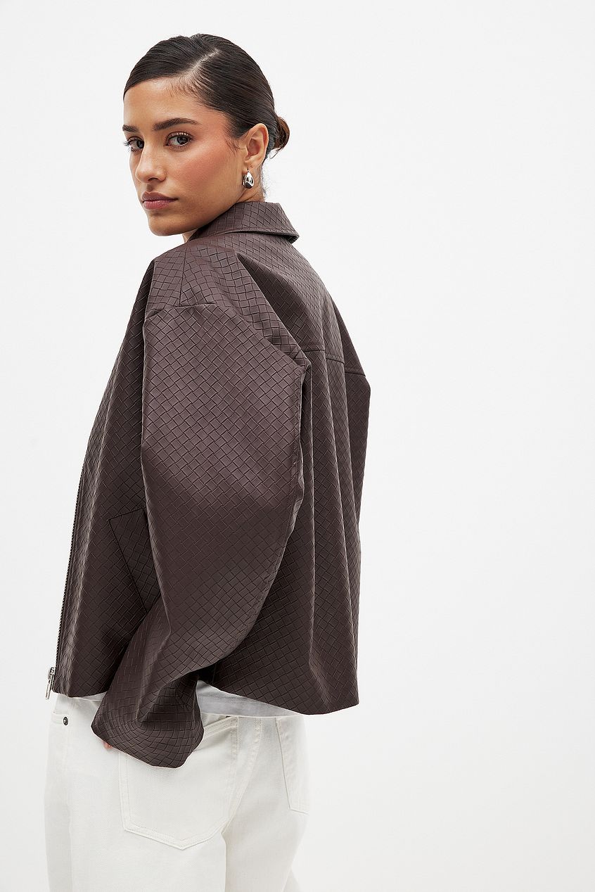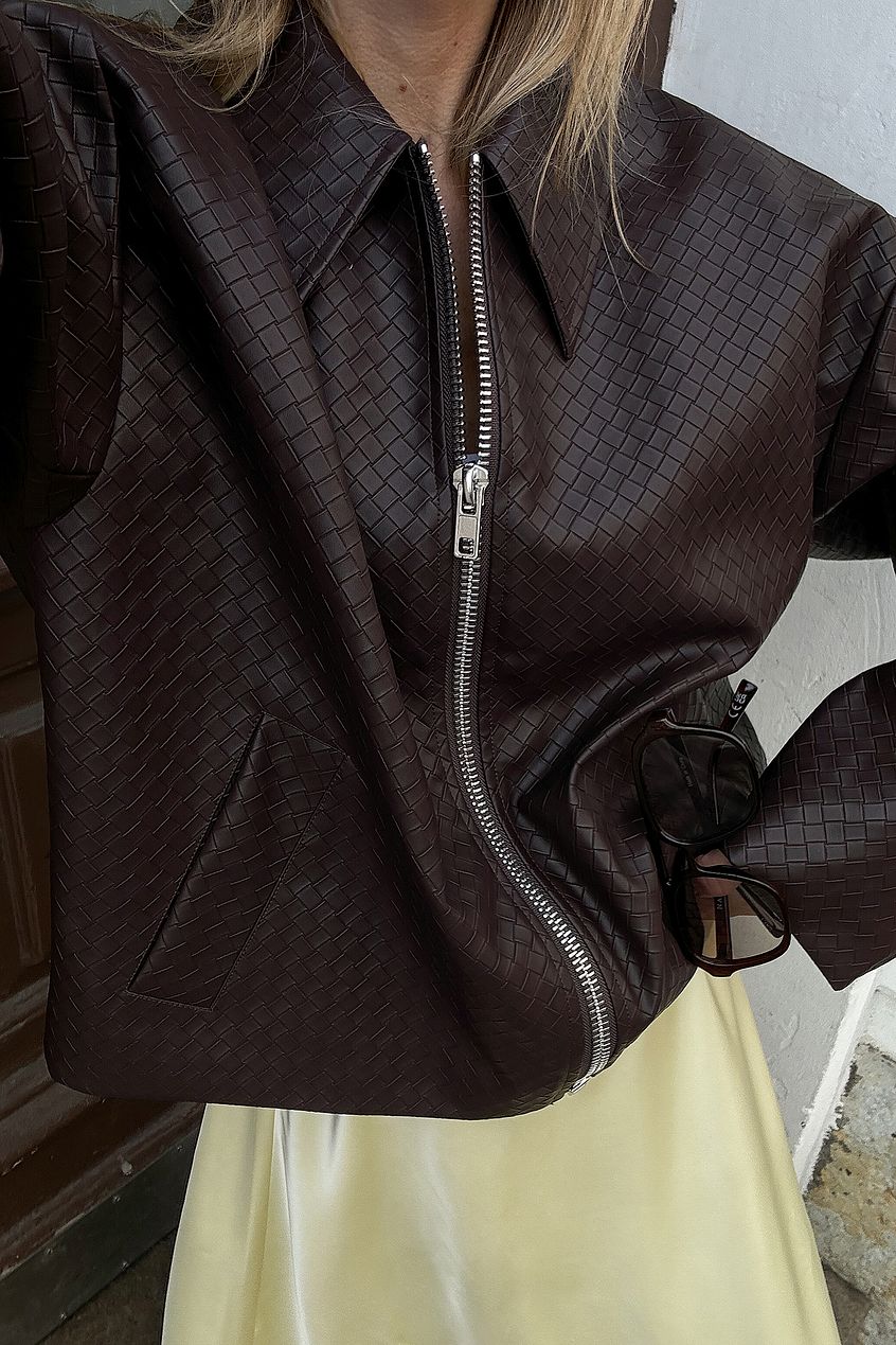 Step up your fashion game with this Brown Woven Faux Leather Jacket and Mini Skirt Set. The jacket features a sleek zip - up design, while the mini skirt adds a touch of edgy charm. Both pieces showcase a distinctive woven texture that's sure to turn heads. Ideal for nights out or fashion - forward events. Lightweight construction ensures fast page load. Shop now for a stylish, coordinated look!