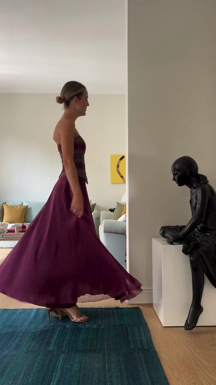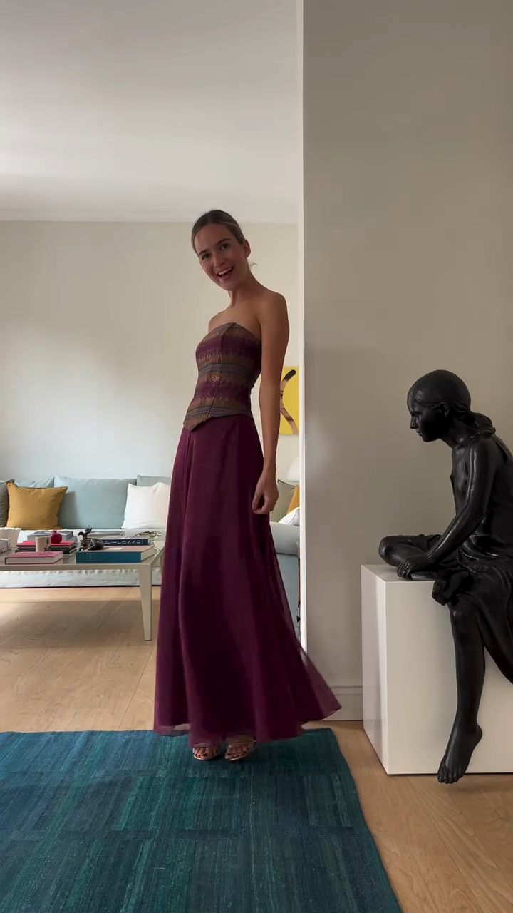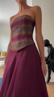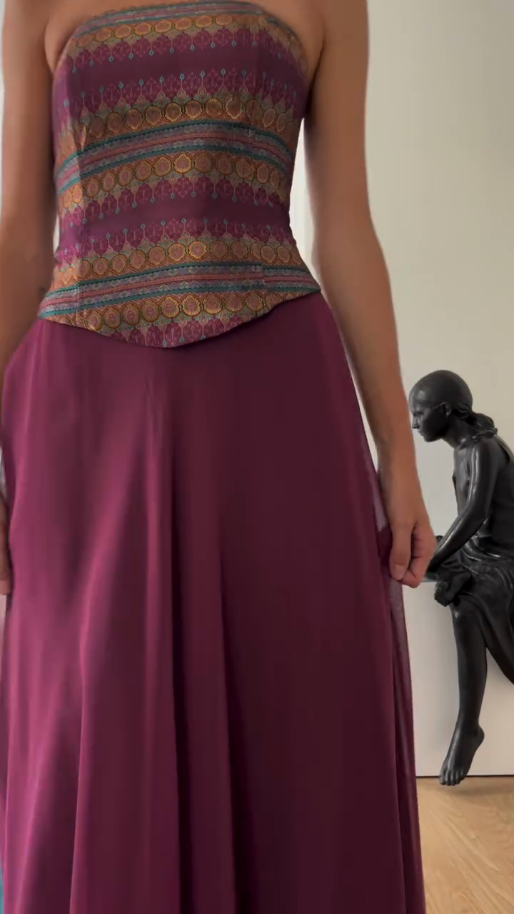 Burgundy Strapless Maxi Dress with Patterned Bodice