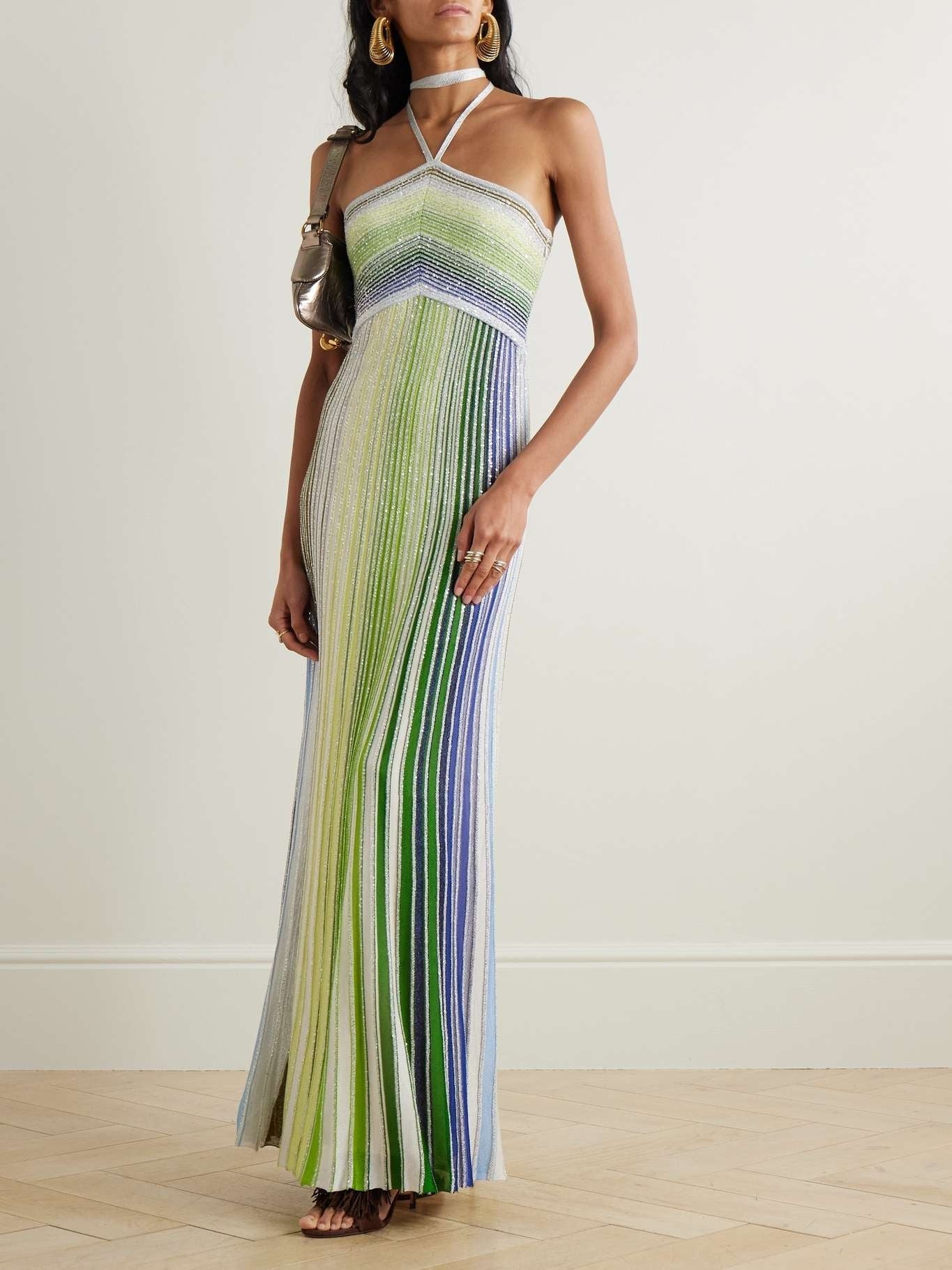 Color - Block Striped Halter Maxi Dress