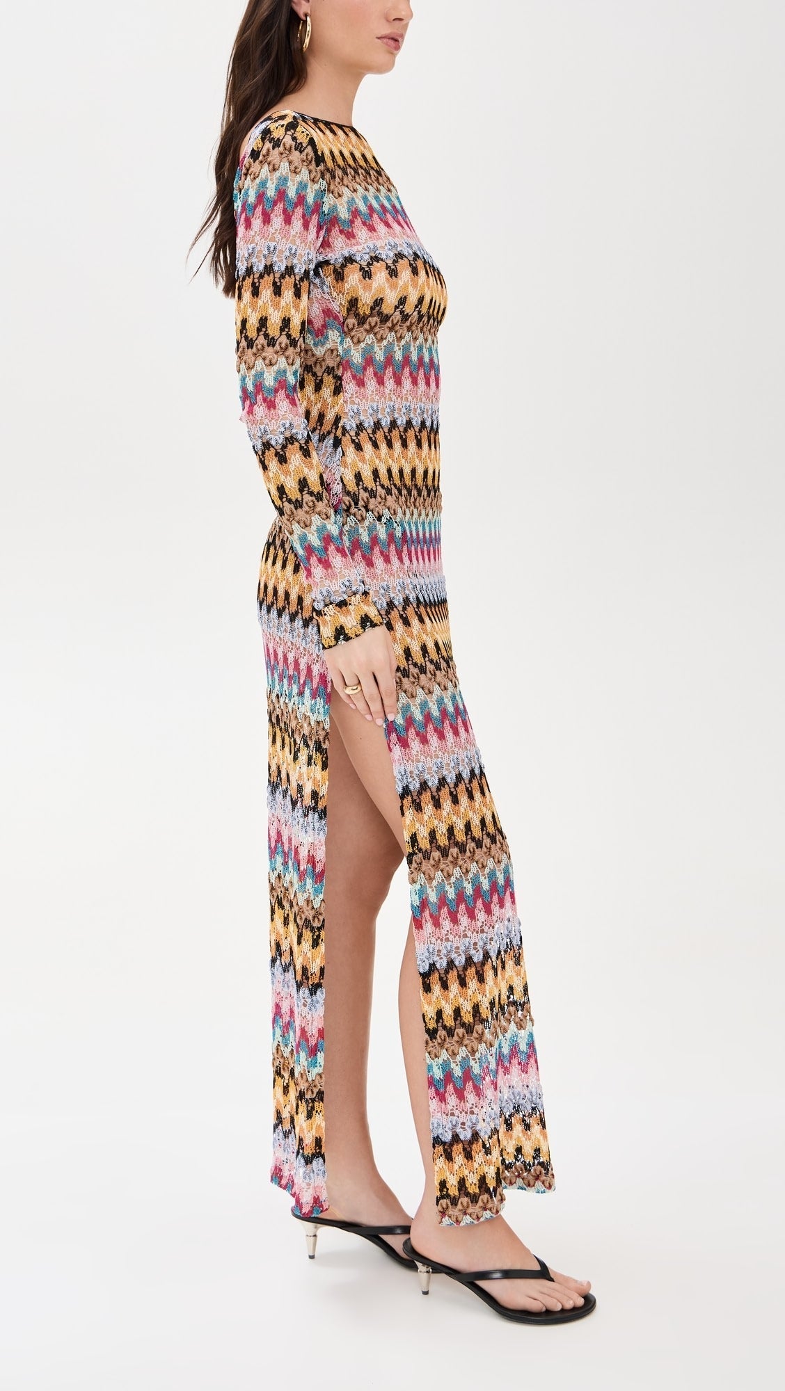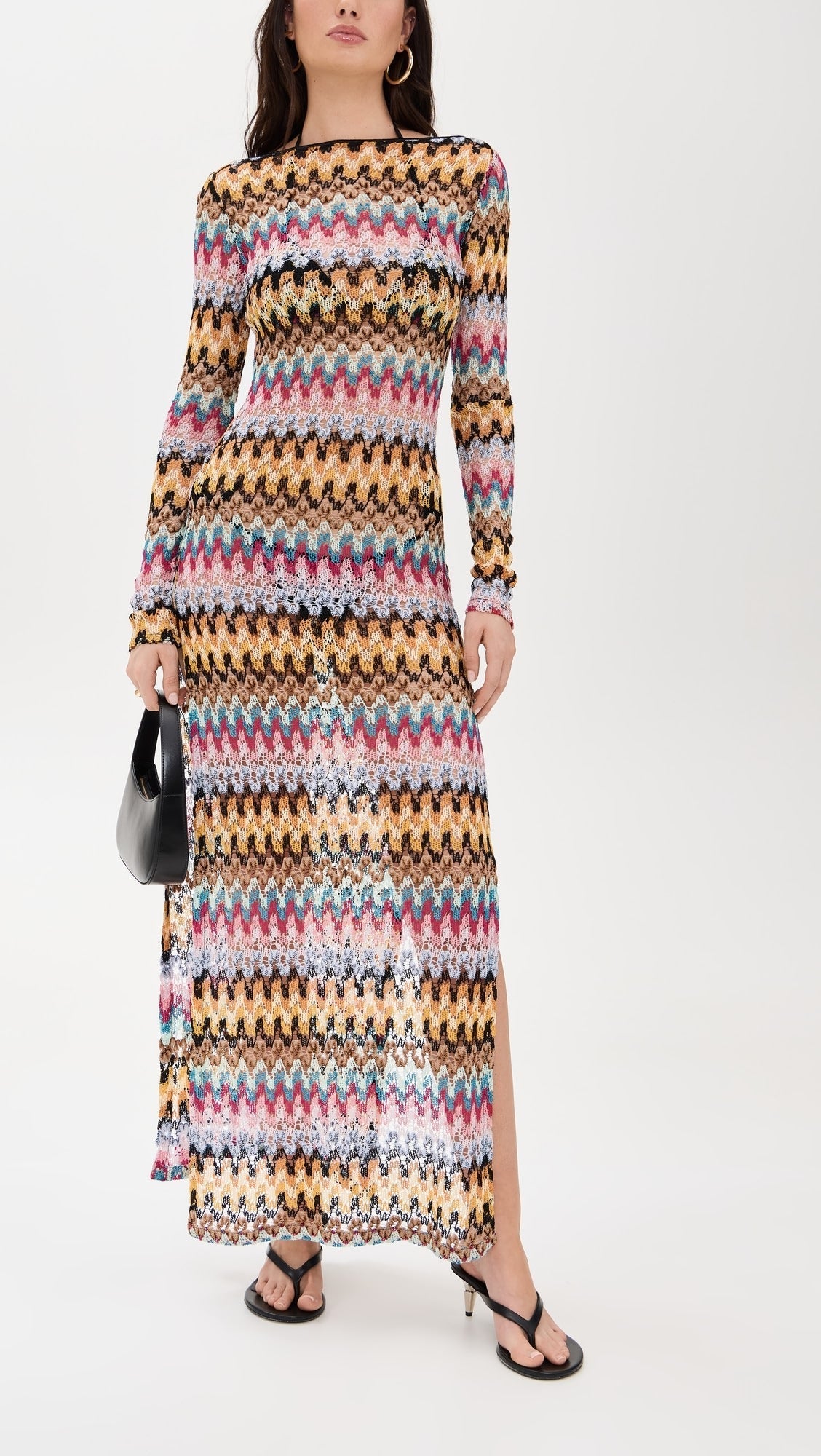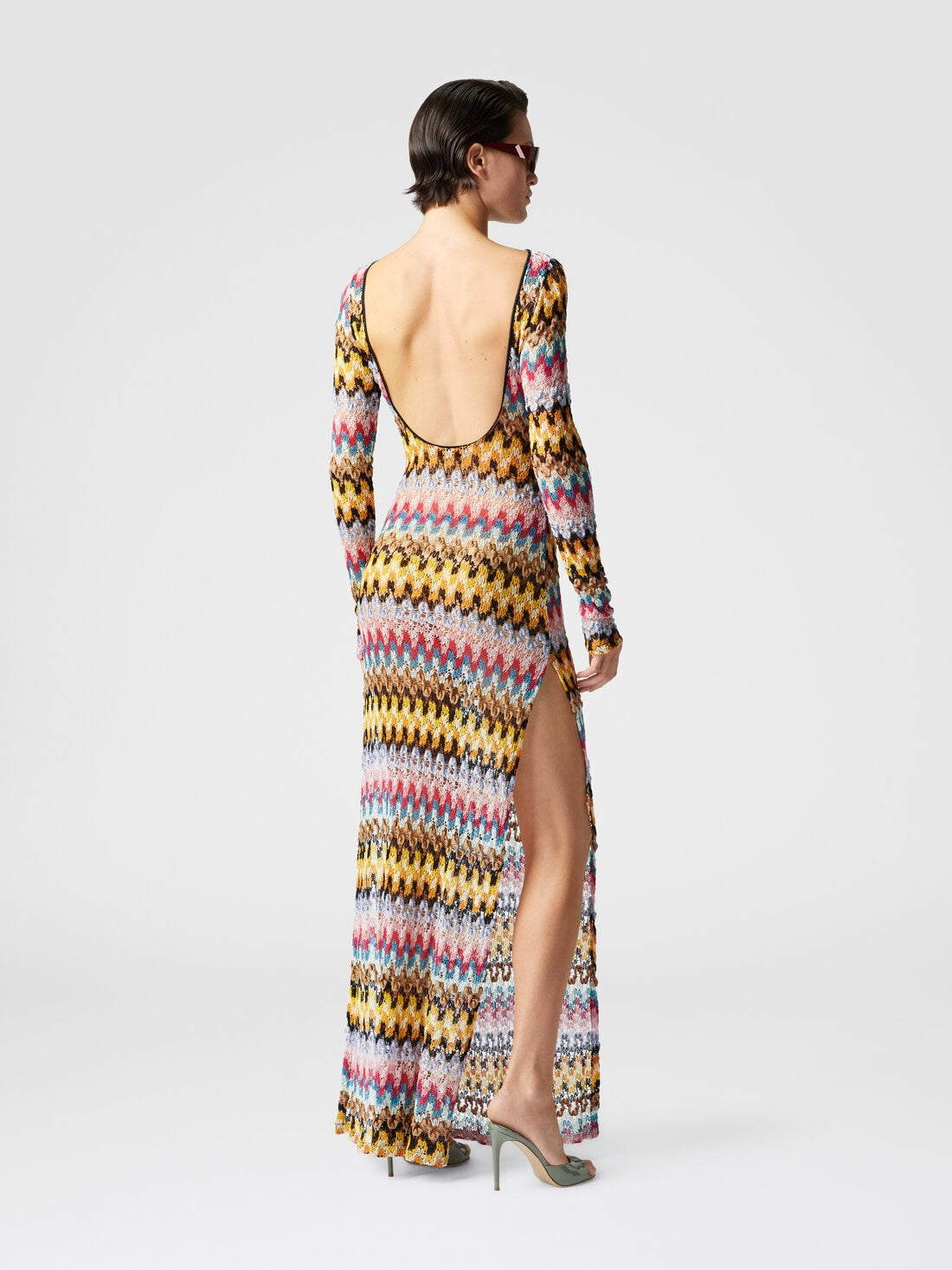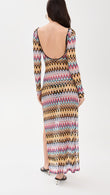 Colorful Chevron - Patterned Long - Sleeve Maxi Dress