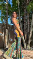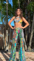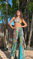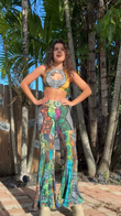 Colorful Patchwork Print Crop Top & Flare Pants Set