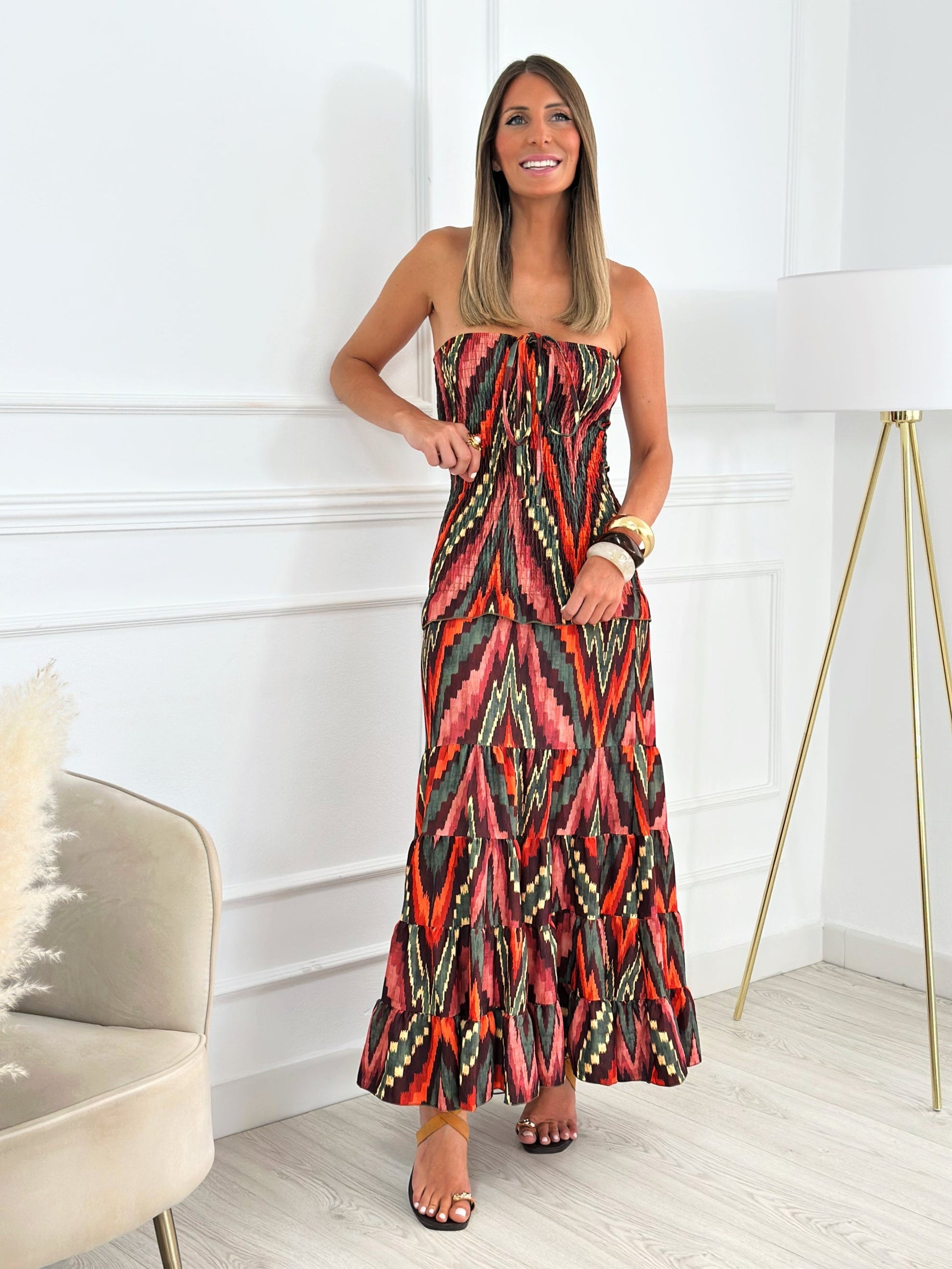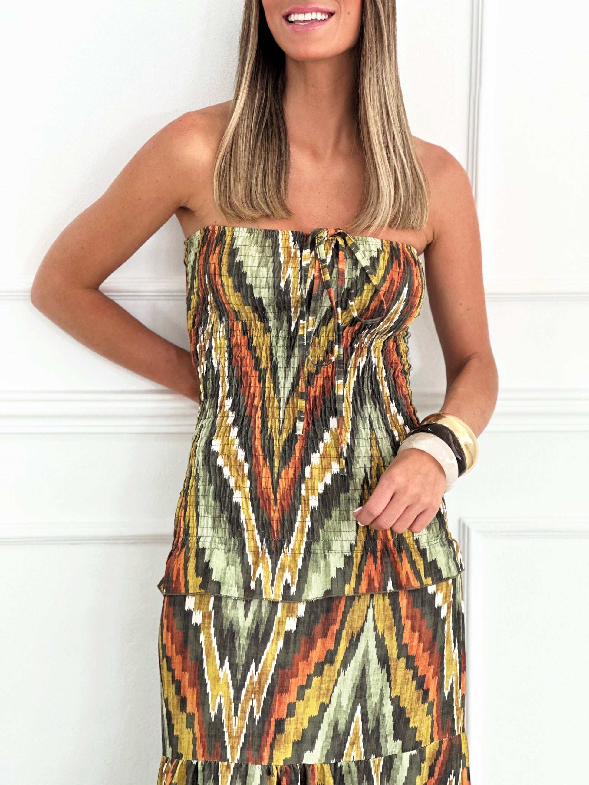 Colorful Striped Off-the-shoulder Top and Long Skirt Set