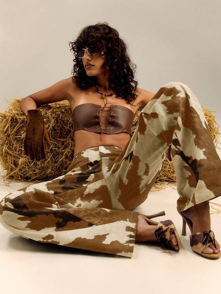 Cow - Print Wide - Leg Jeans