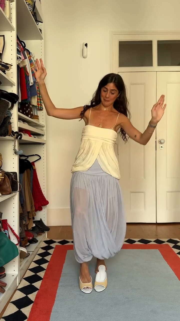Cream Cami Top and Light Gray Pleated Skirt Set