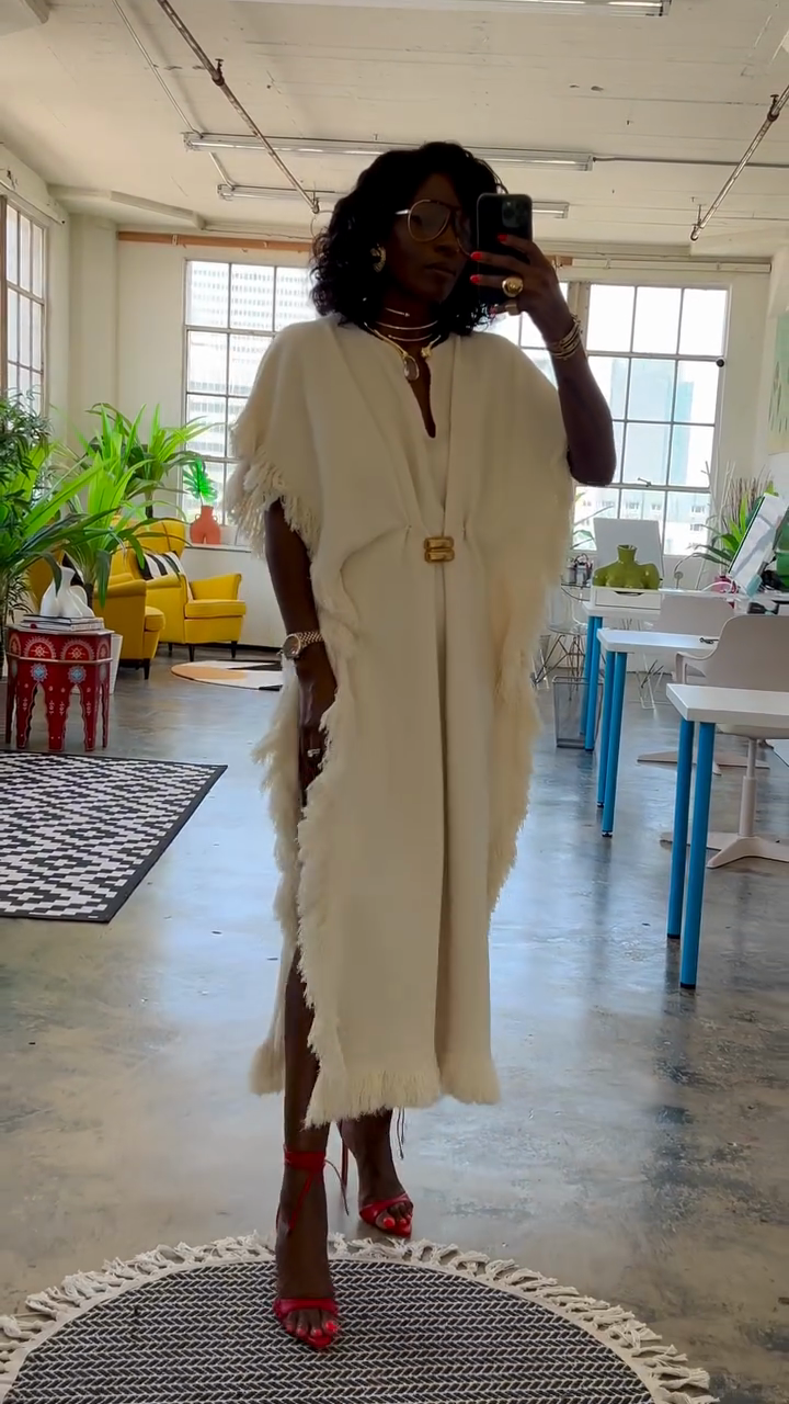 Cream Fringe - Trimmed Cape - Style Top
