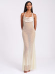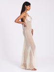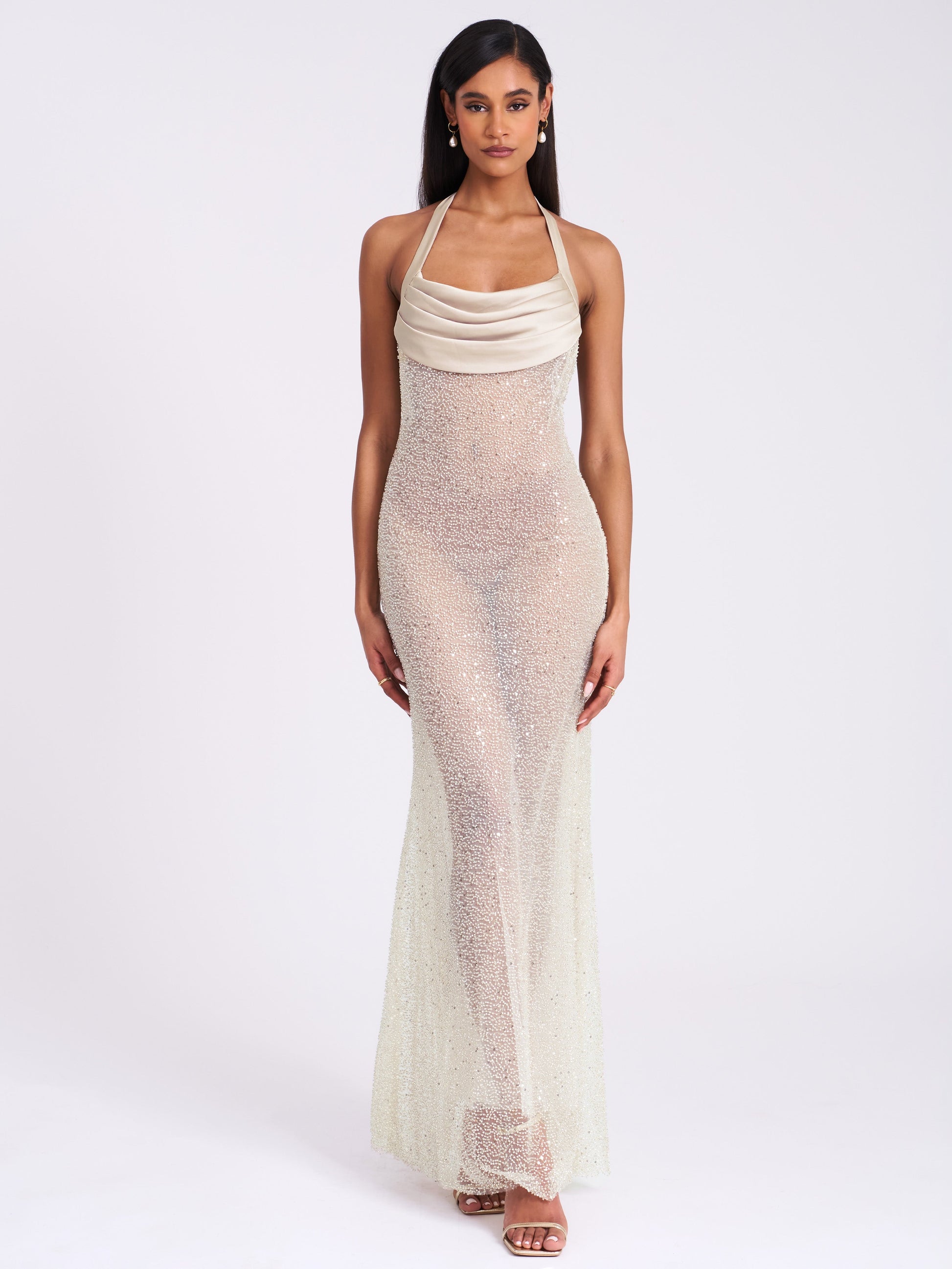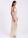 Cream Halter Neck Sequined Maxi Dress