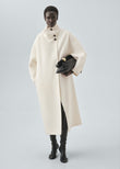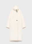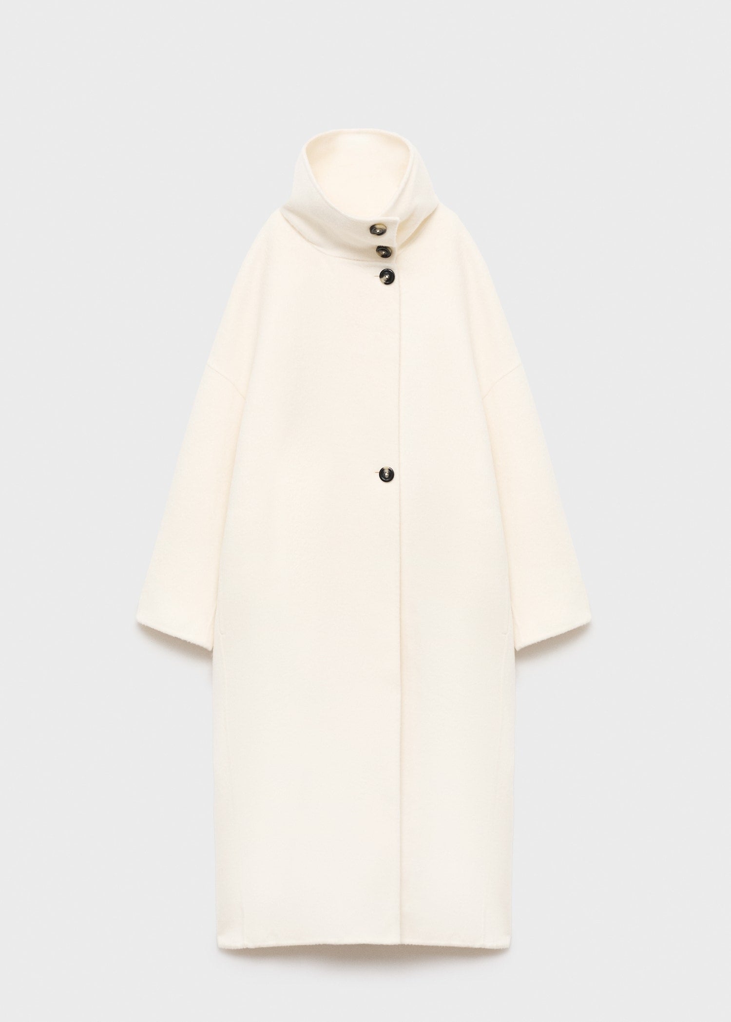 This cream-colored coat features a loose silhouette for a casual yet stylish look. Its high collar provides warmth while maintaining sophistication. The simple, elegant button-down front exudes a timeless charm that transcends fashion trends.