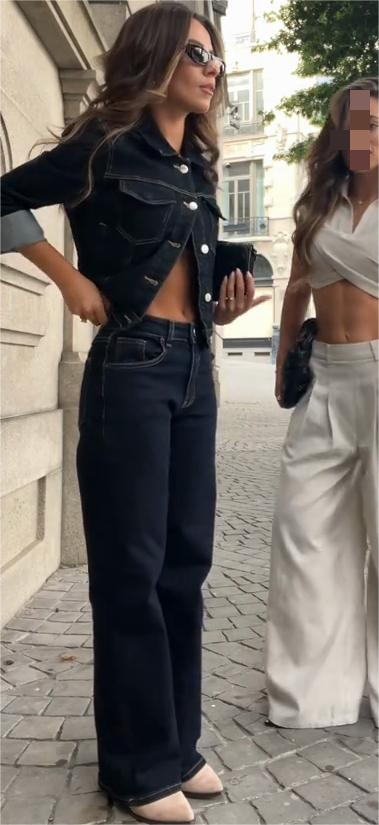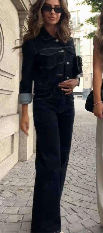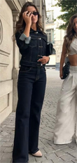 Dark Denim Jacket and Flared Jeans Set
