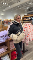 Material: Nylon (fabric) and sheepskin (trimming/paneling)