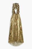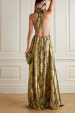 Duffled Floralprint Halterneck Maxi Dress