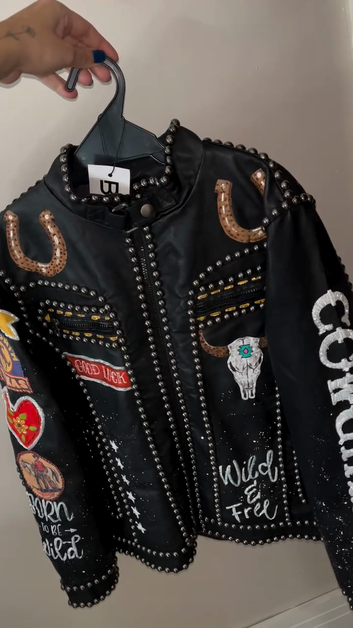 Embellished Leather Cropped Jacket