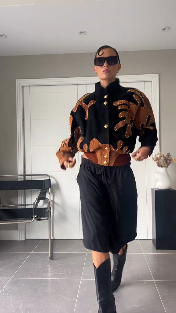 Embellished Suede Bomber Jacket