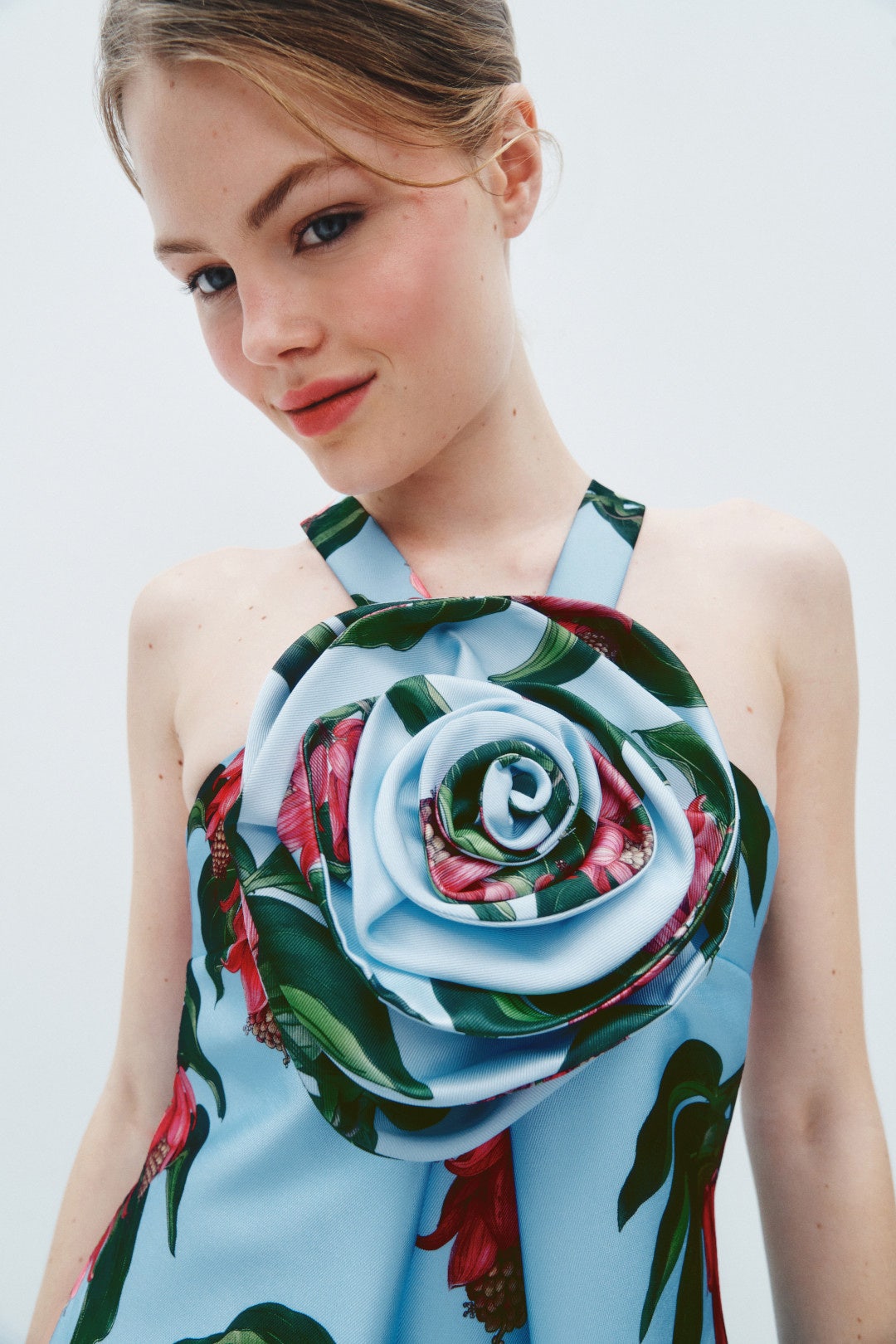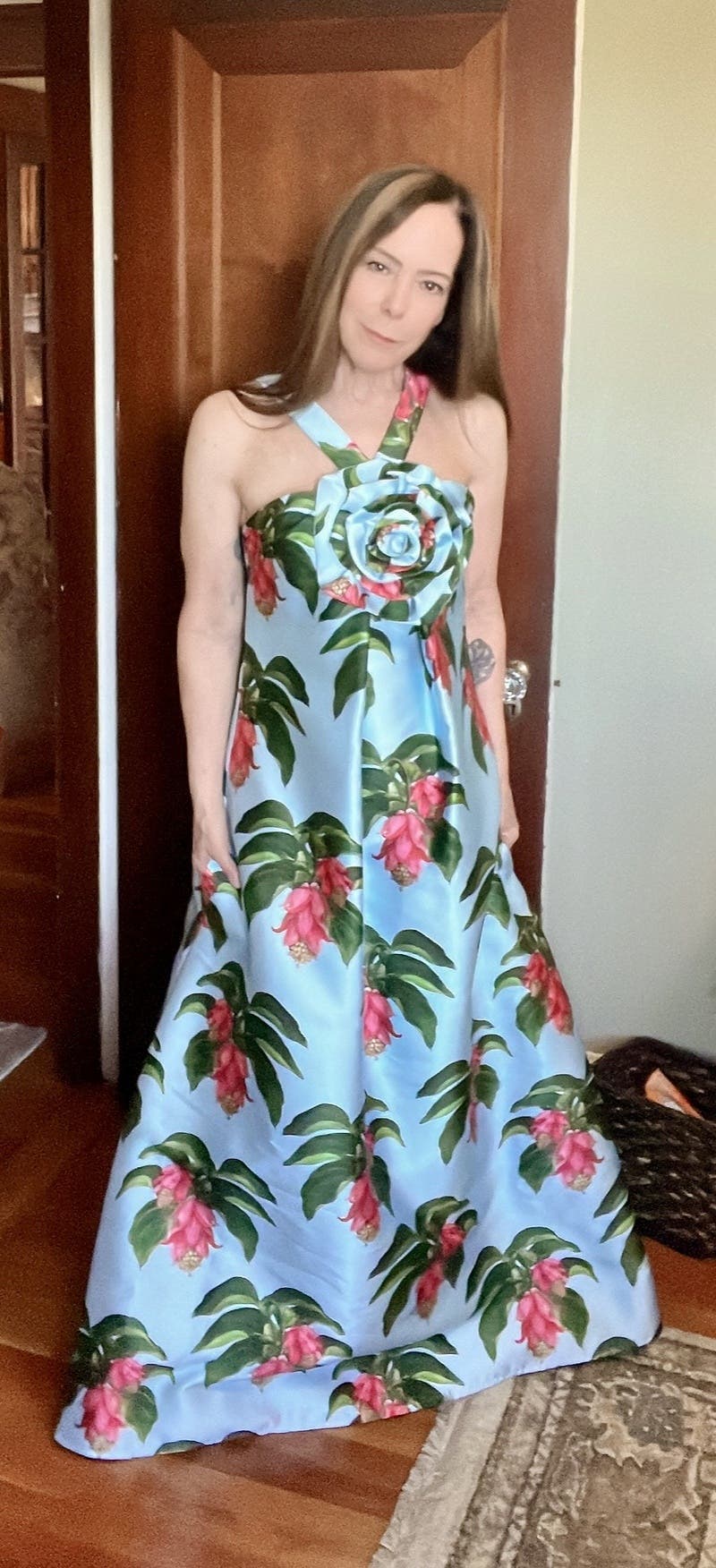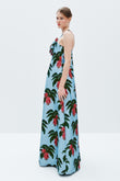 Floral Halter Maxi Dress with Rosette Detail