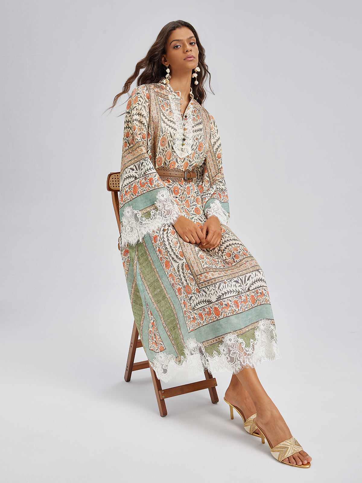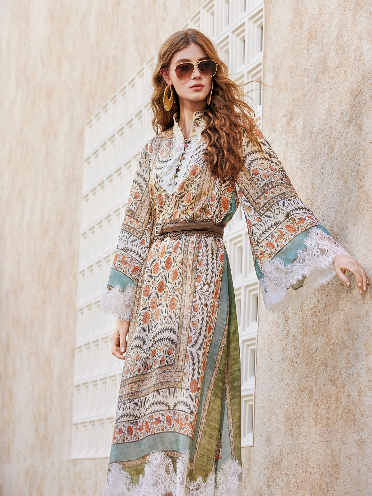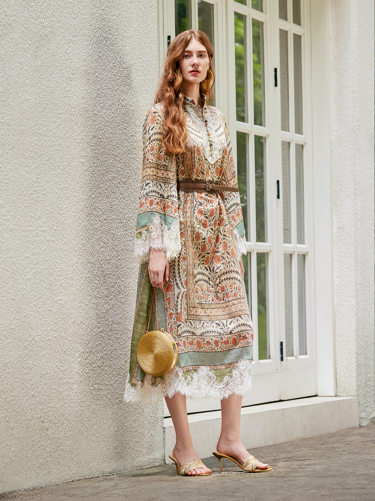 Floral - Paisley Print Lace Midi Dress