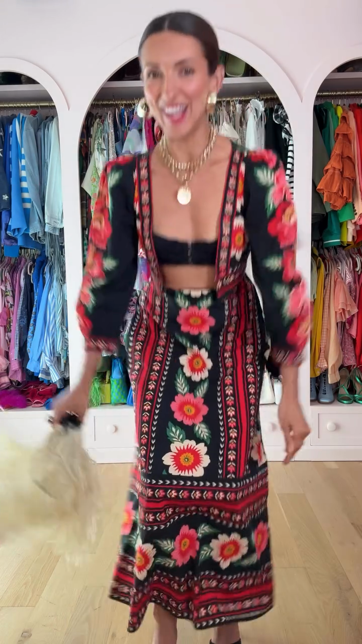 Floral Print Kimono - Style Cardigan and Midi Skirt Set