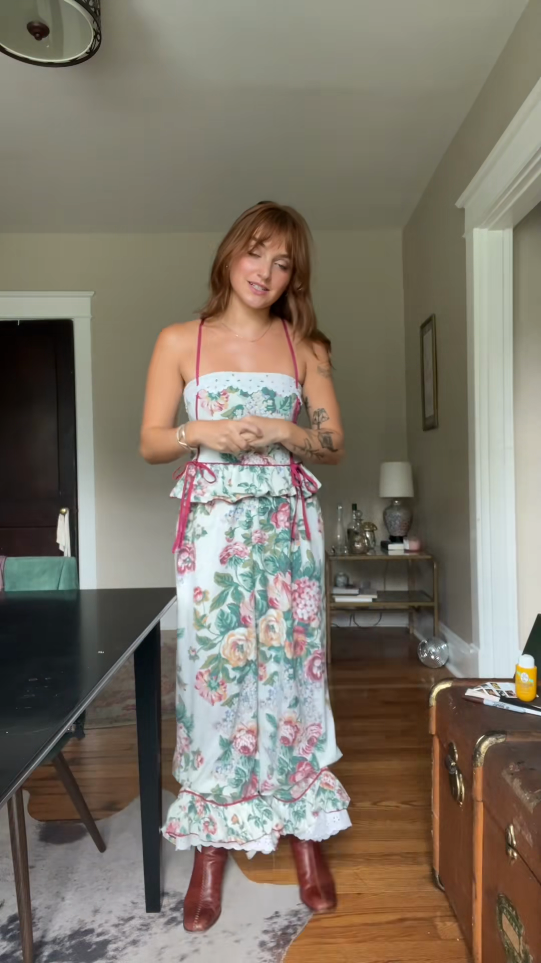 Floral Print Top and Long Skirt Set With Pink Accents