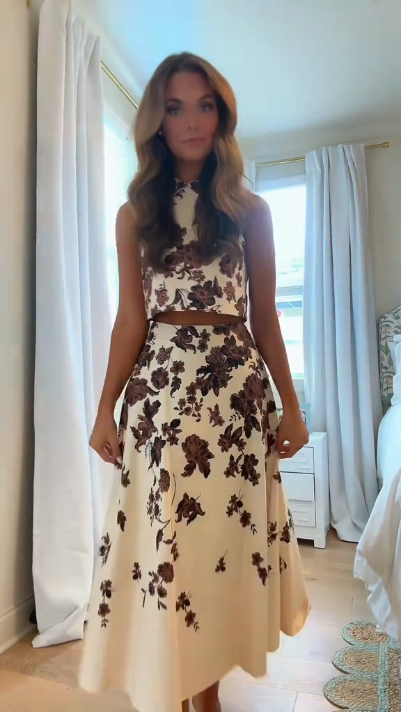 Floral Print Two - piece Set (Crop Top and Midi Skirt)