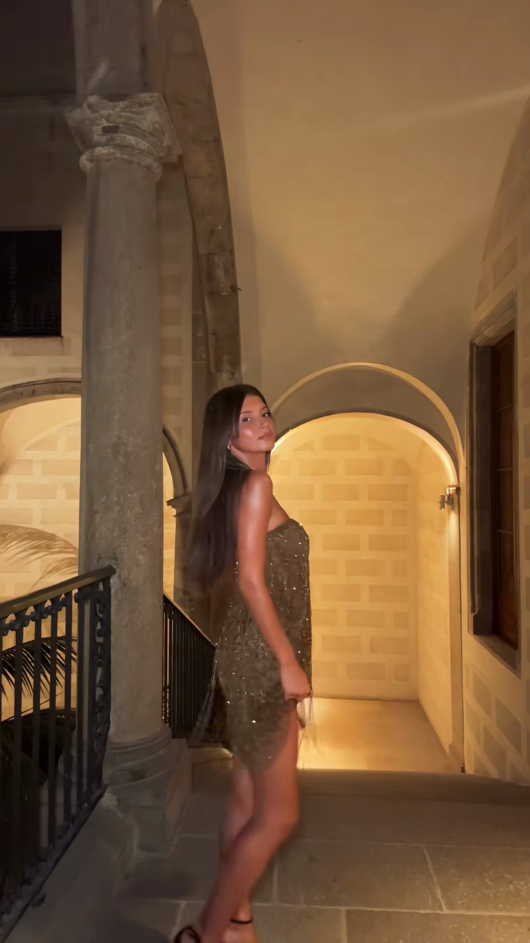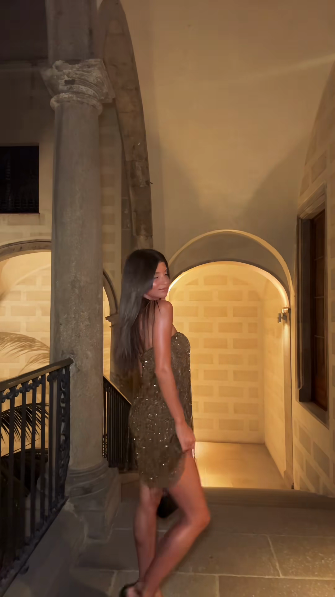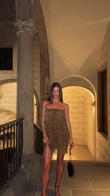 Gold Sequin Strapless Mini Dress