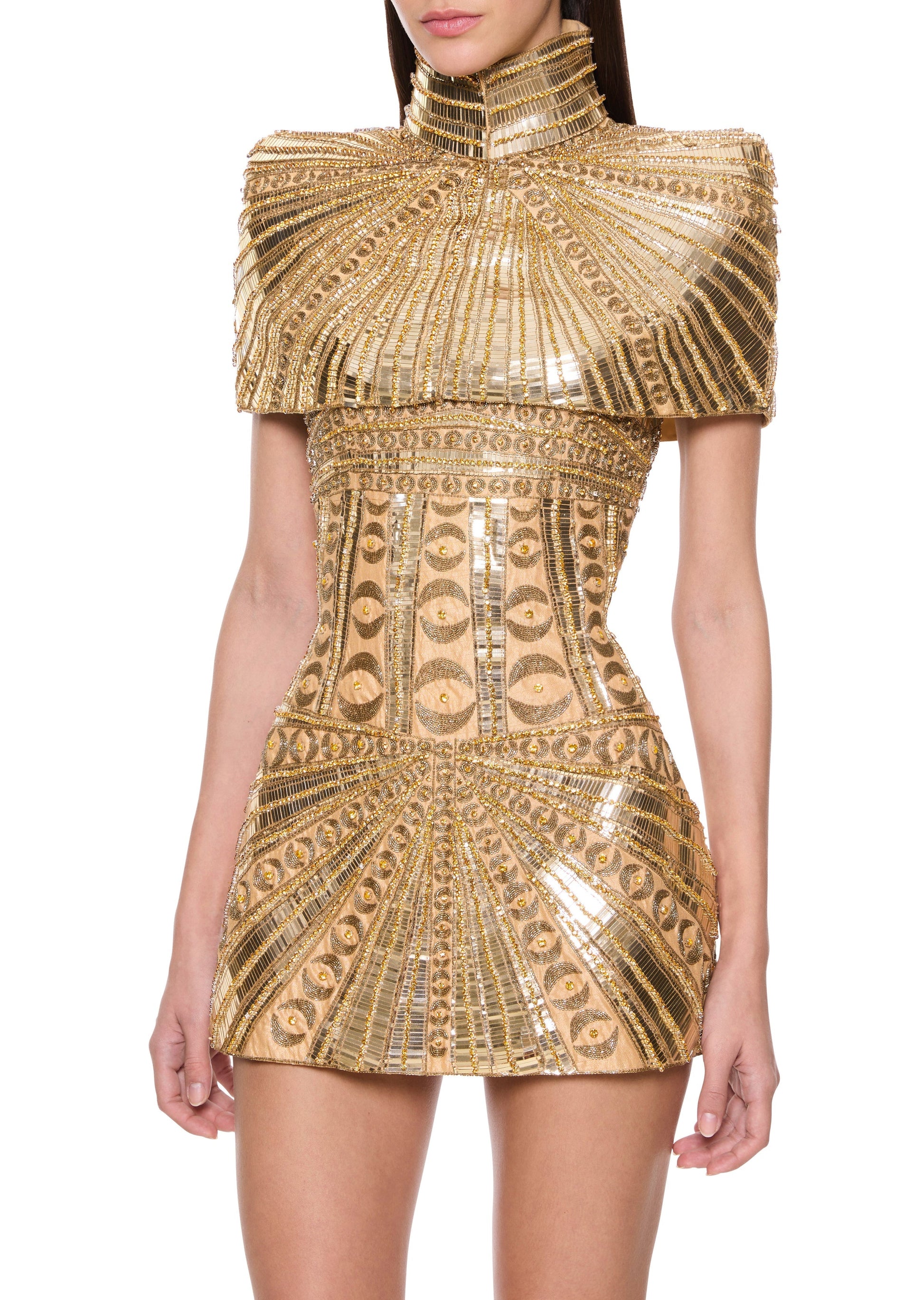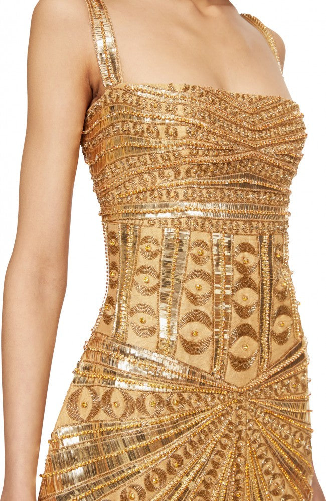 Gold-trimmed mini dress