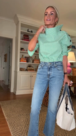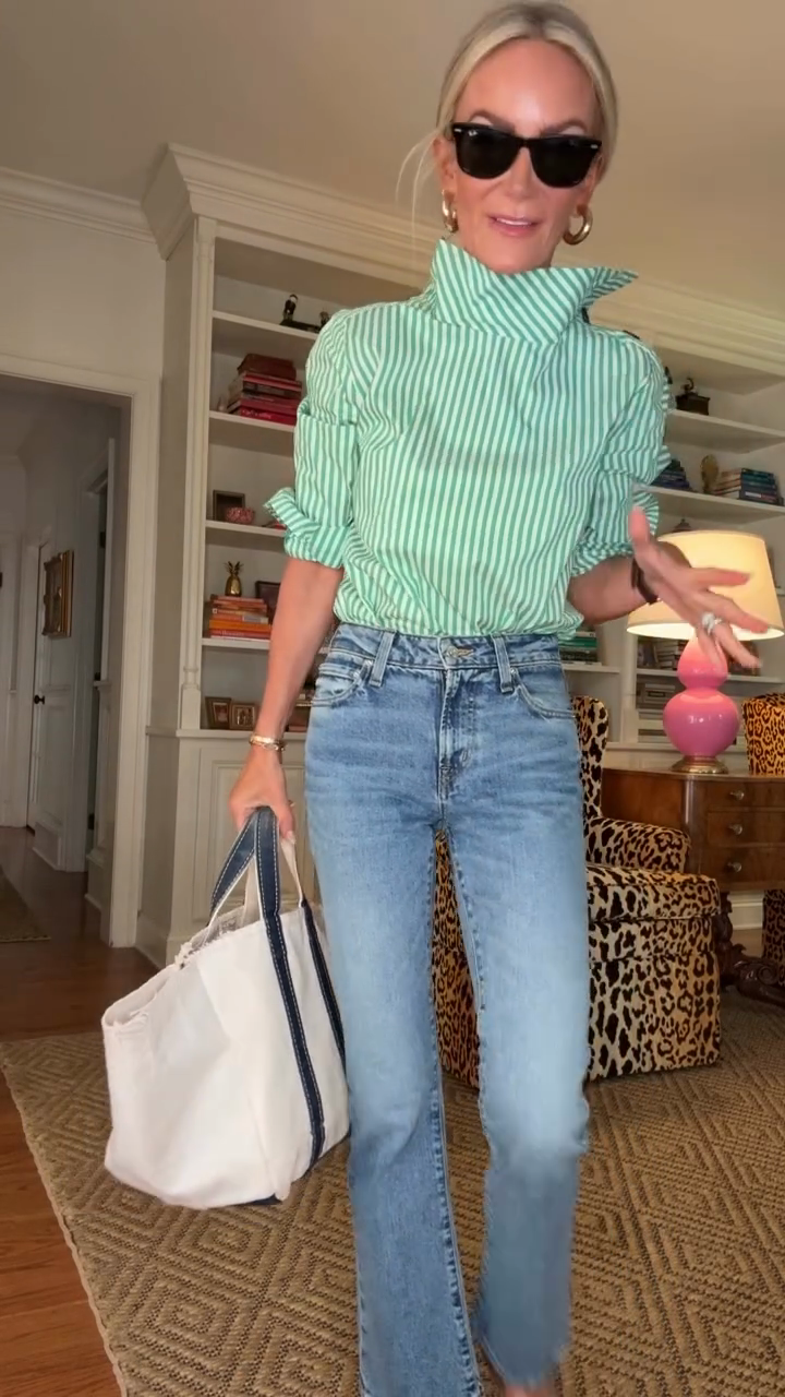 Green and White Striped High - Neck Blouse