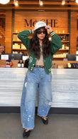 Green Embroidered Bomber Jacket